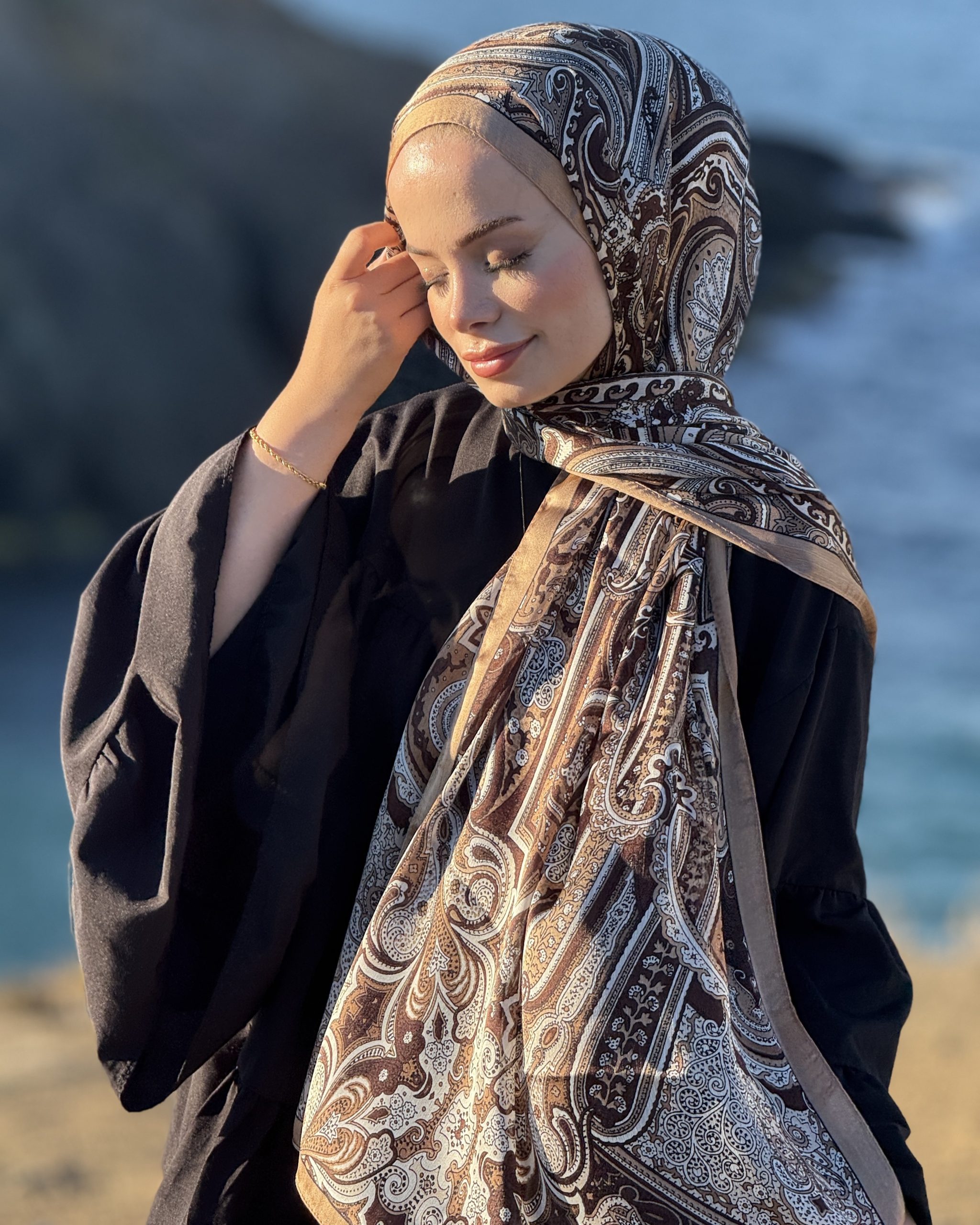 İdol İpek Baskılı Şal- Kahve&Bej - Eqra | Şal - Eşarp