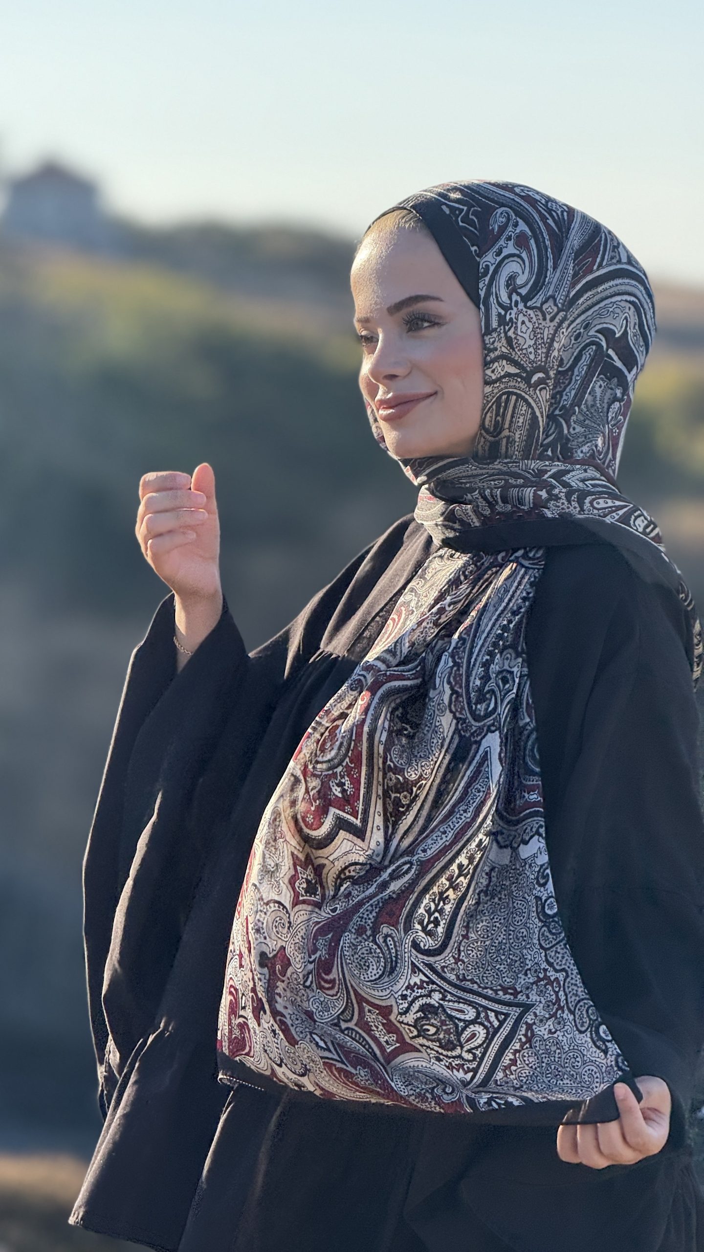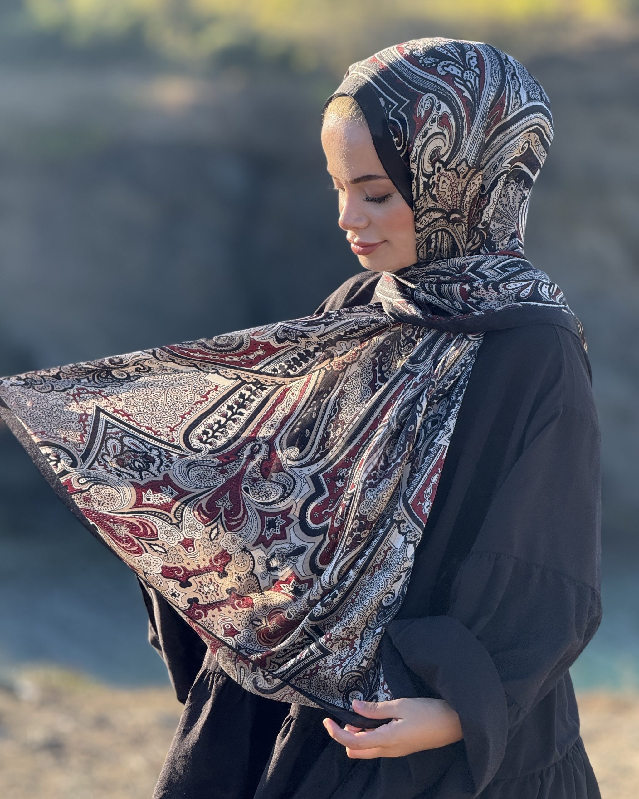 İdol İpek Baskılı Şal- Siyah&BloodRed
